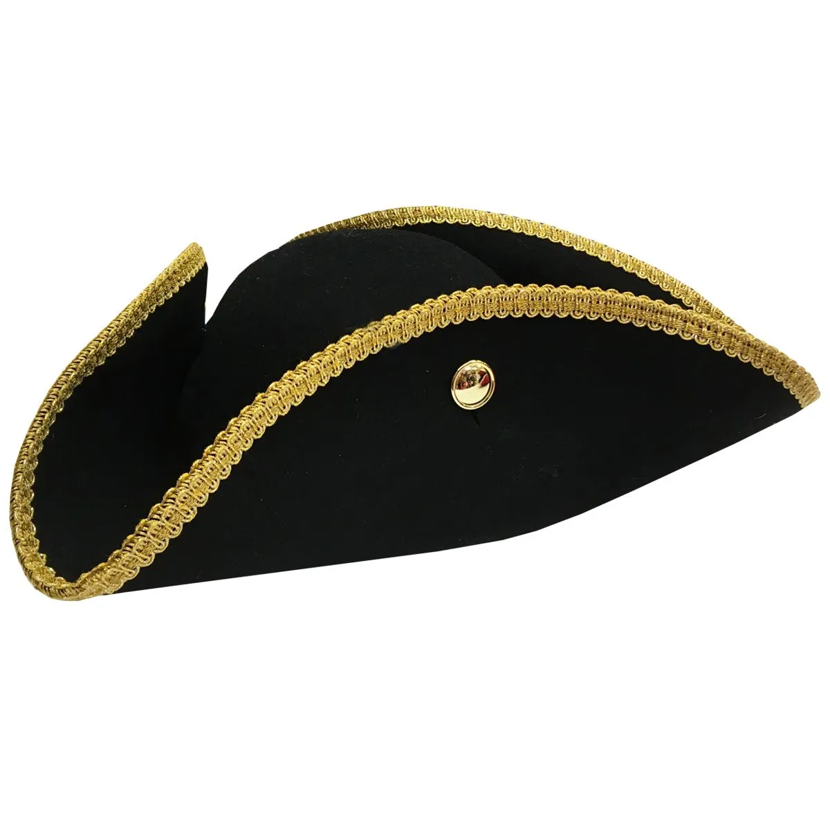Mooie zwarte driesteek van 100% wolvilt, afgezet met met chique brokaat band. Wolvilt is een topmateriaal met zeer hoog draagcomfort.