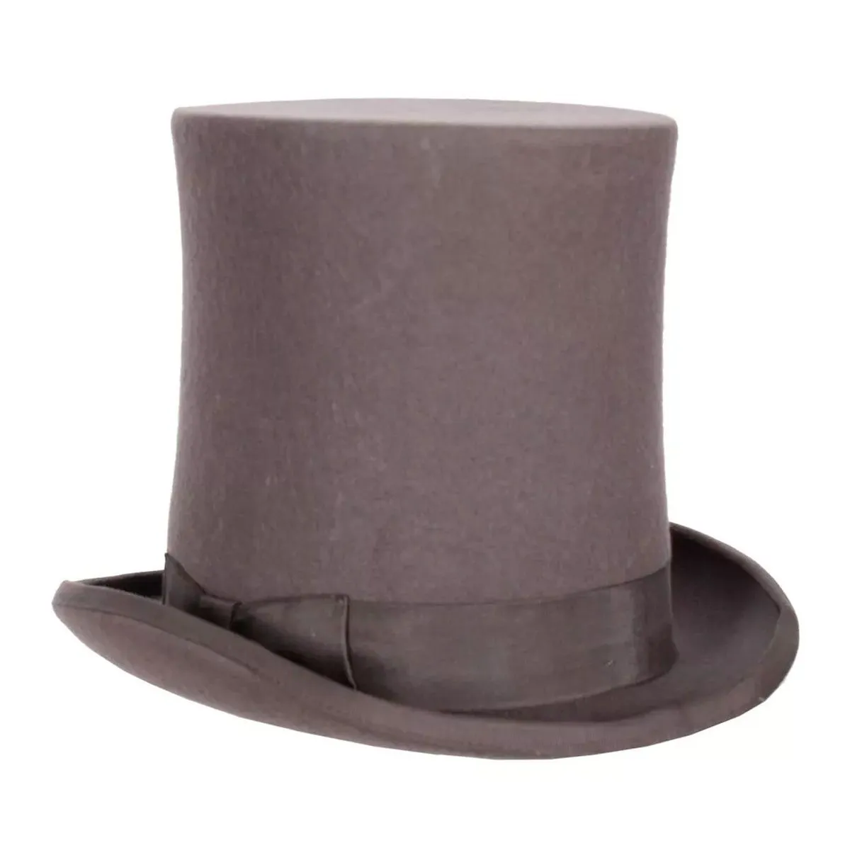 Deze cylinder hoed van 100% wolvilt is gevoerd met een 100% polyester witte satijn en is voorzien van een voeringband, de hoogte van deze hoed is 21 cm.