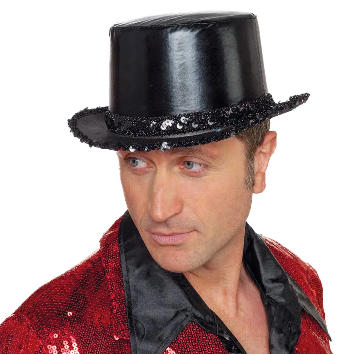 Hoge hoed met pailetten rand. One-size.