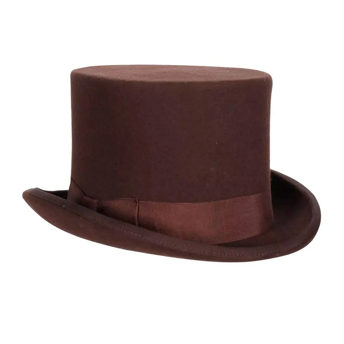 Deze cylinder hoed van 100% wolvilt is gevoerd met een 100% polyester witte satijn en is voorzien van een voeringband, de hoogte van deze hoed is 14 cm.