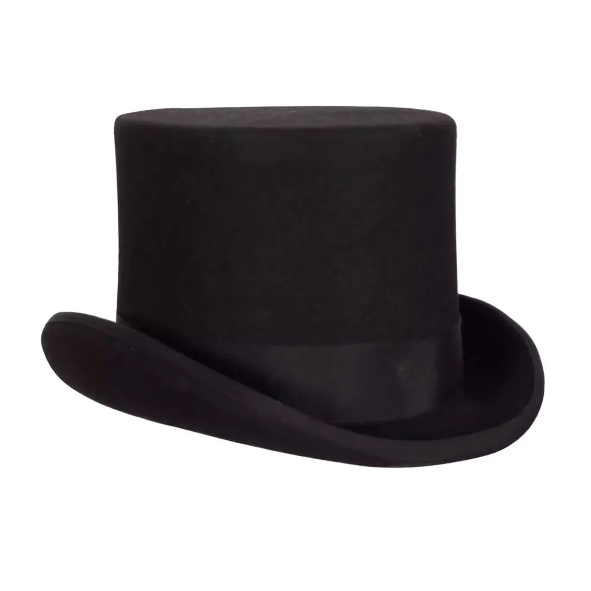 Deze cylinder hoed van 100% wolvilt is gevoerd met een 100% polyester witte satijn en is voorzien van een voeringband, de hoogte van deze hoed is 14 cm.