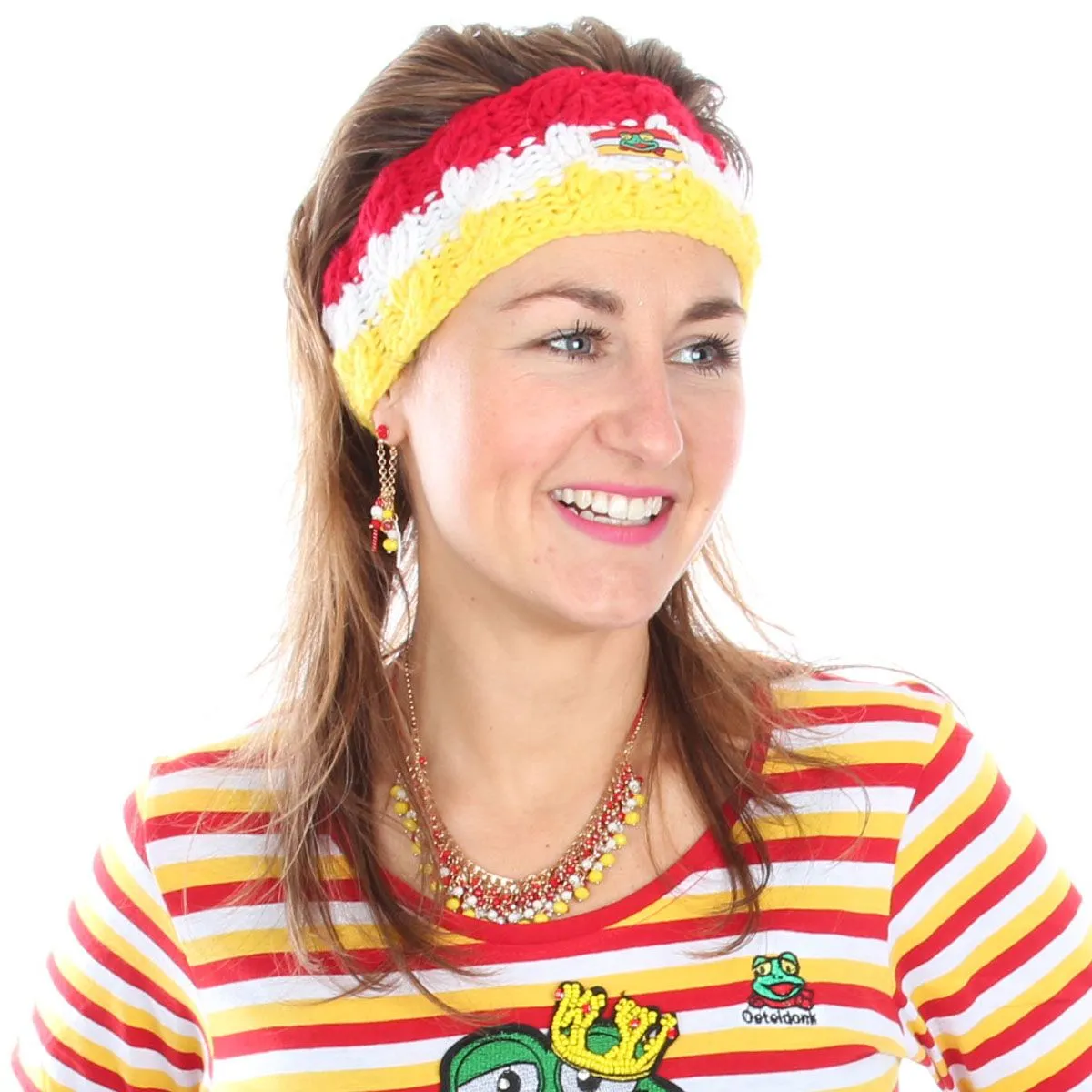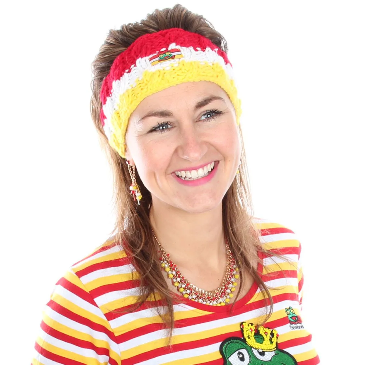 Gebreide hoofdband in Oeteldonk kleuren. Maakt je outfit helemaal af!