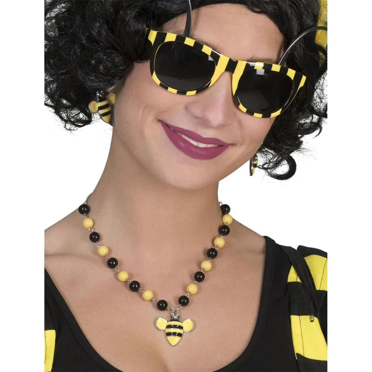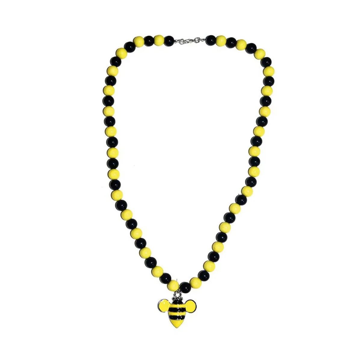 Ketting met zwart/gele kralen en een bijtje. Combineer deze ketting bij je zwart/gele outfit en je bent een echte Maja de Bij!