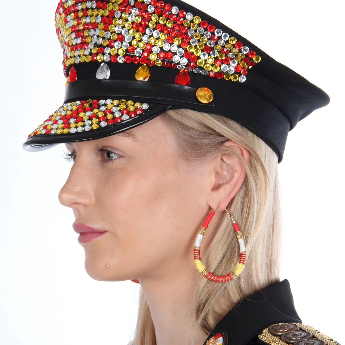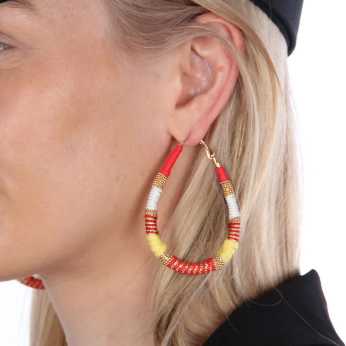 Luxe Oeteldonk oorbellen. De oorbellen zijn verfijnd afgewerkt met verschillende materialen in rood-wit-geel en goud. Deze oorbellen maken je outfit compleet!