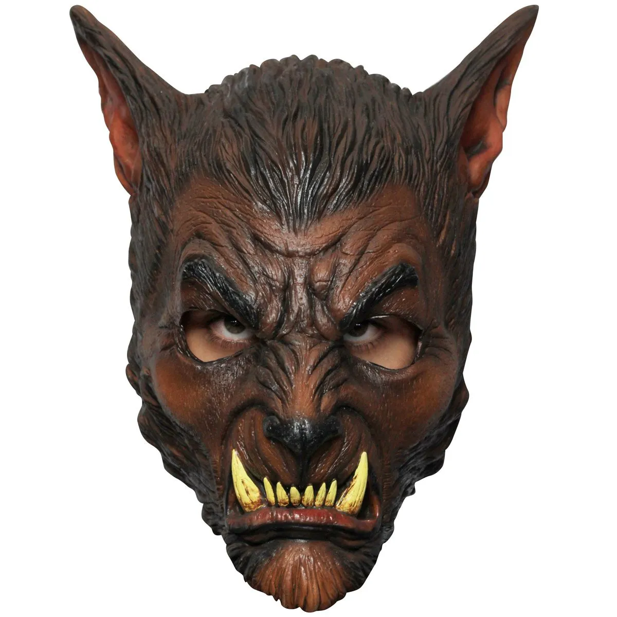 Lekker eng weerwolf masker. Deze bruine weerwolf met grote oren heeft grote, angstaanjagende tanden. Een super masker voor Halloween, hiermee jaag jij iedereen op de vlucht bij volle maan!