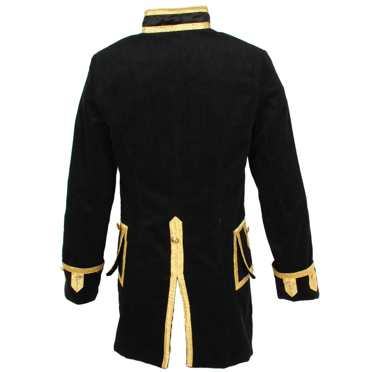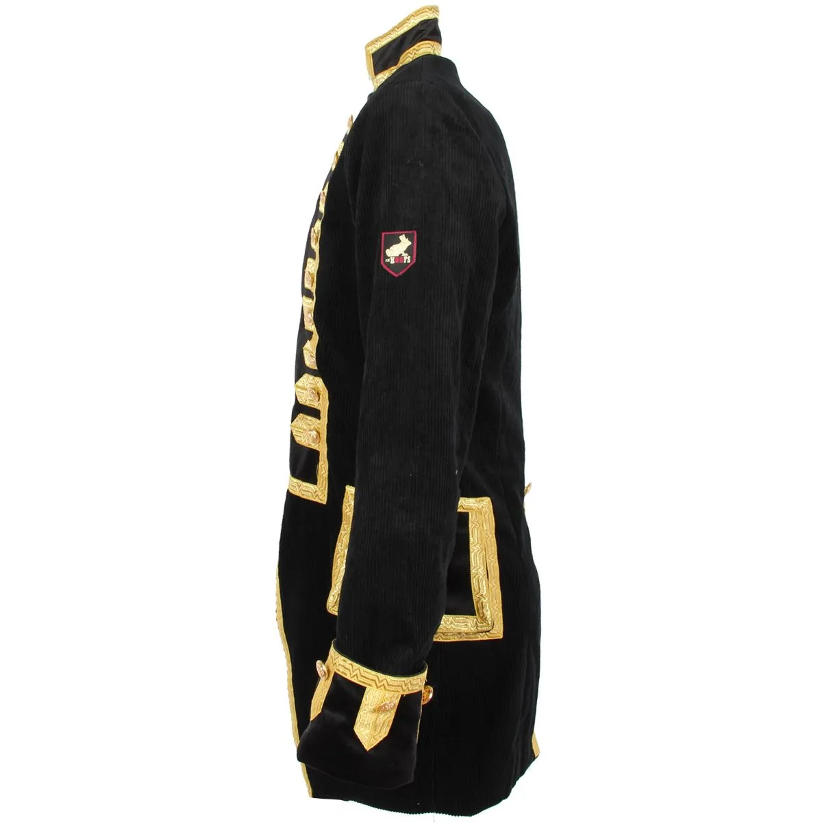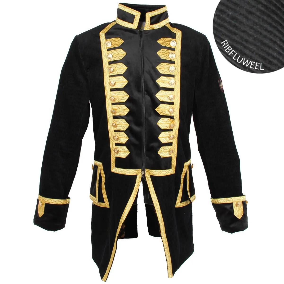 Exclusief bij Hoofs! Zeer mooie, gevoerde herenjas van ribfluweel. Deze Oeteldonkse jas uit onze eigen productie heeft een prachtige, diepzwarte kleur met gouden accenten en gouden knopen. De zachte ribfluweel van 100% katoen geeft een moderne uitstraling aan deze jas en zorgt bovendien voor een zeer hoog draagcomfort. Het voorpand met rits en de mouwomslag zijn uitgevoerd in een contrasterende zwarte velvet stof. Het gouden brokaatband zorgt voor een chique uitstraling.