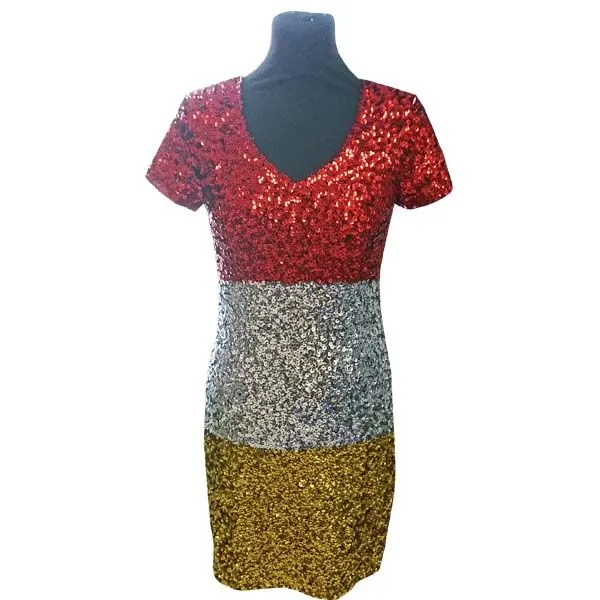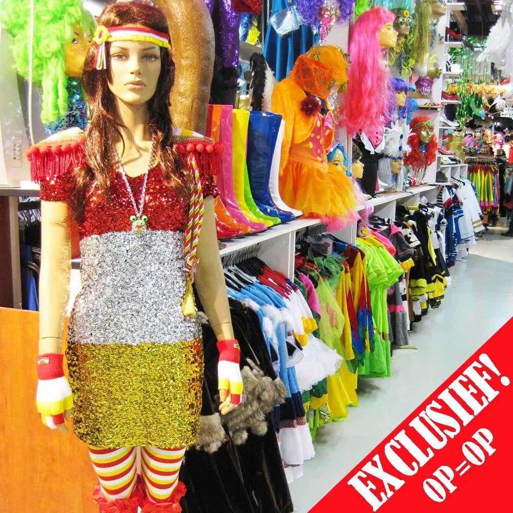 Zeer mooi vallend pailletten jurkje in de Oeteldonkse kleuren