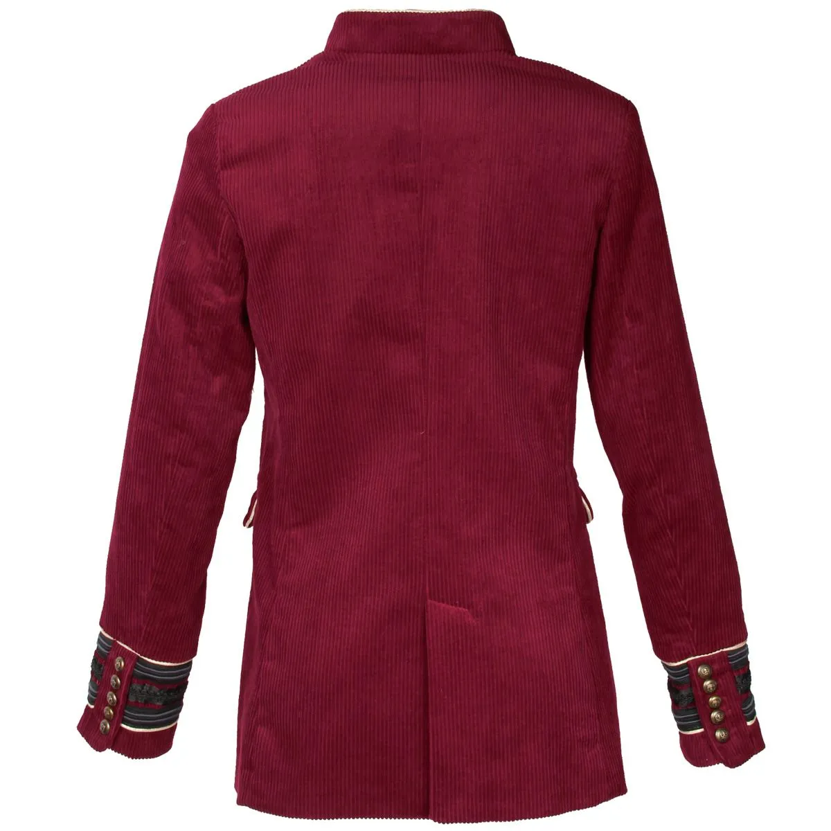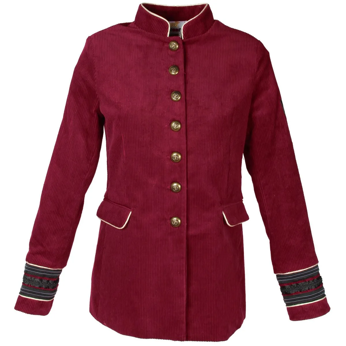 Exclusief bij Hoofs! Zeer mooie, gevoerde uniform damesjas van ribfluweel. Deze chique Oeteldonkse jas uit onze eigen productie heeft een prachtige, bordeauxrode kleur met gouden accenten en gouden bolknopen. De zachte ribfluweel van 100% katoen geeft een moderne uitstraling aan deze jas en zorgt bovendien voor een zeer hoog draagcomfort.