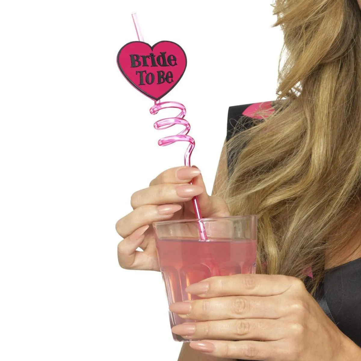 Roze swirl rietje van stevig kunststof met de tekst ‘Bride to be’. Hiermee kan de aanstaande bruid haar cocktails heerlijk opdrinken.