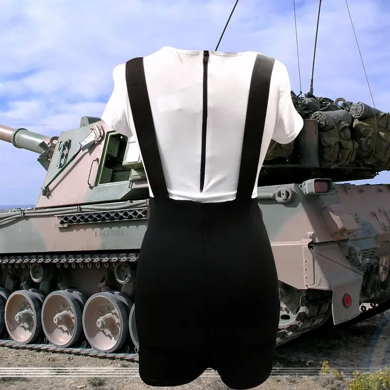 SWAT catsuit met daar aan vast bretels en een shirt.