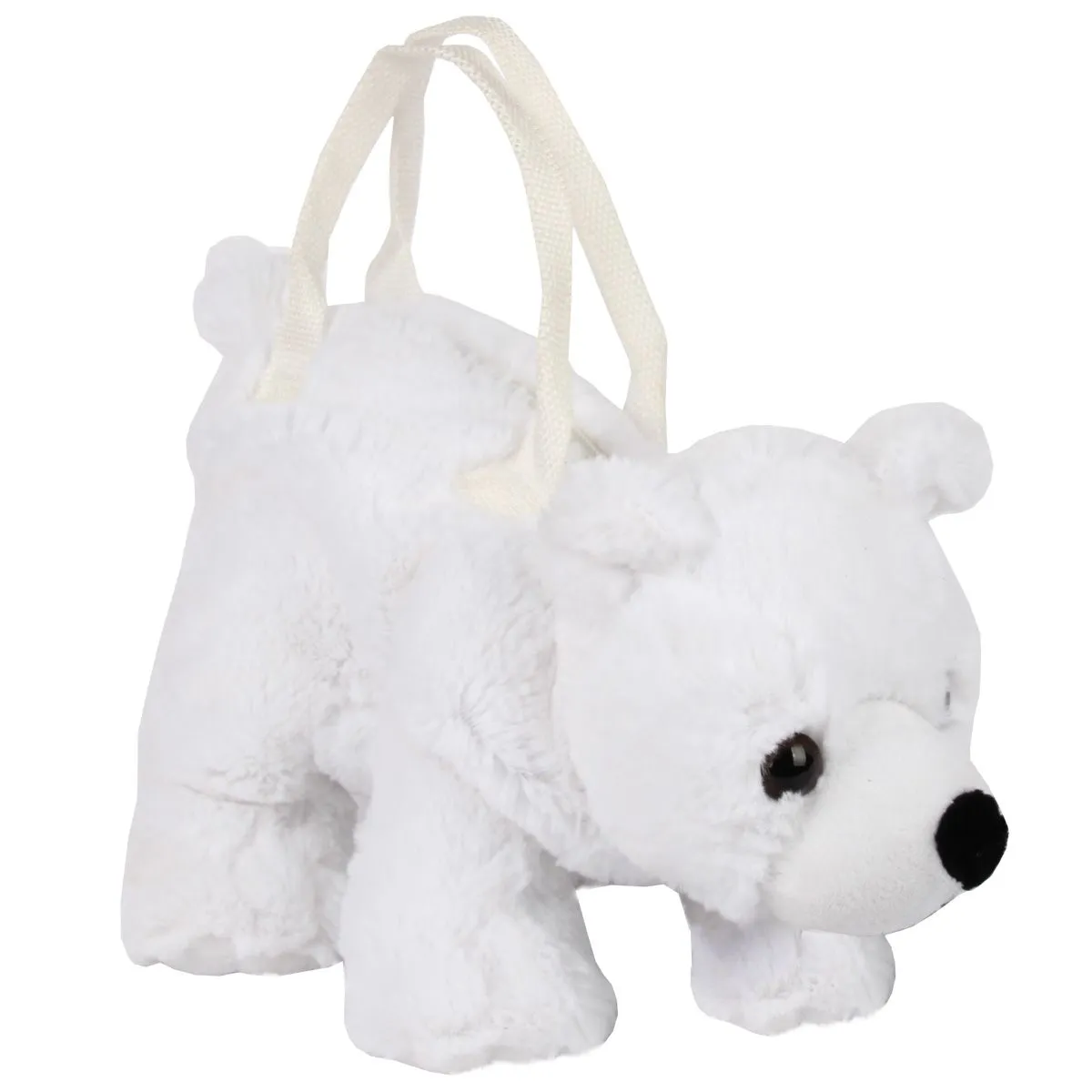 Zachte pluche tasje ijsbeer met korte hengsels.