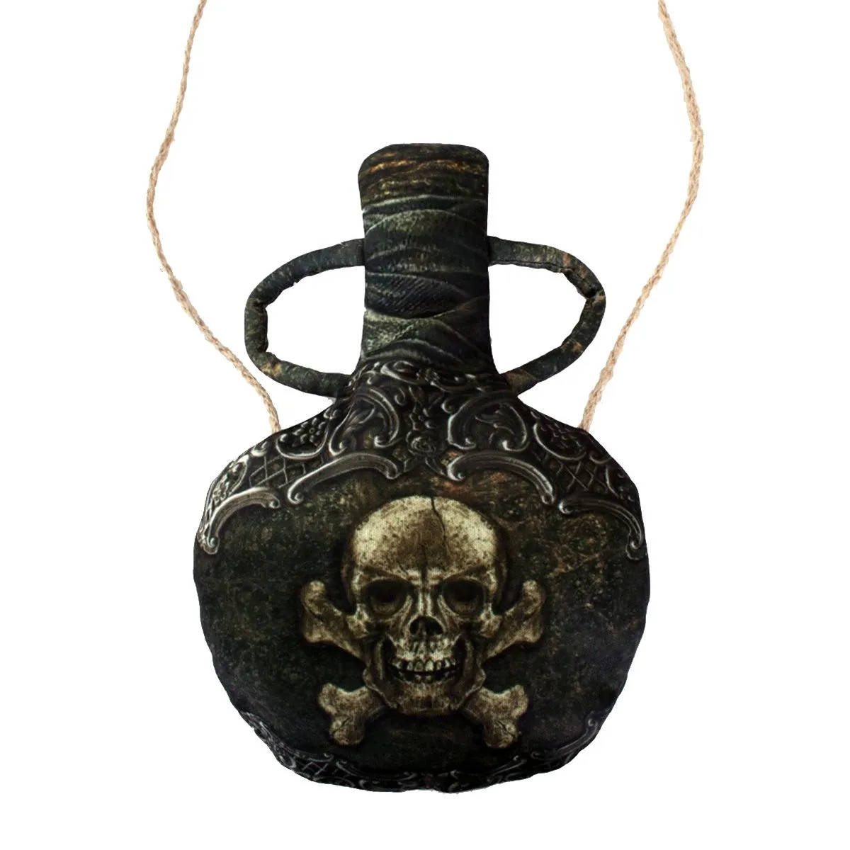 Fles aan koord in piraten stijl met doodshoofd. Een top accessoire voor jouw piraten outfit!