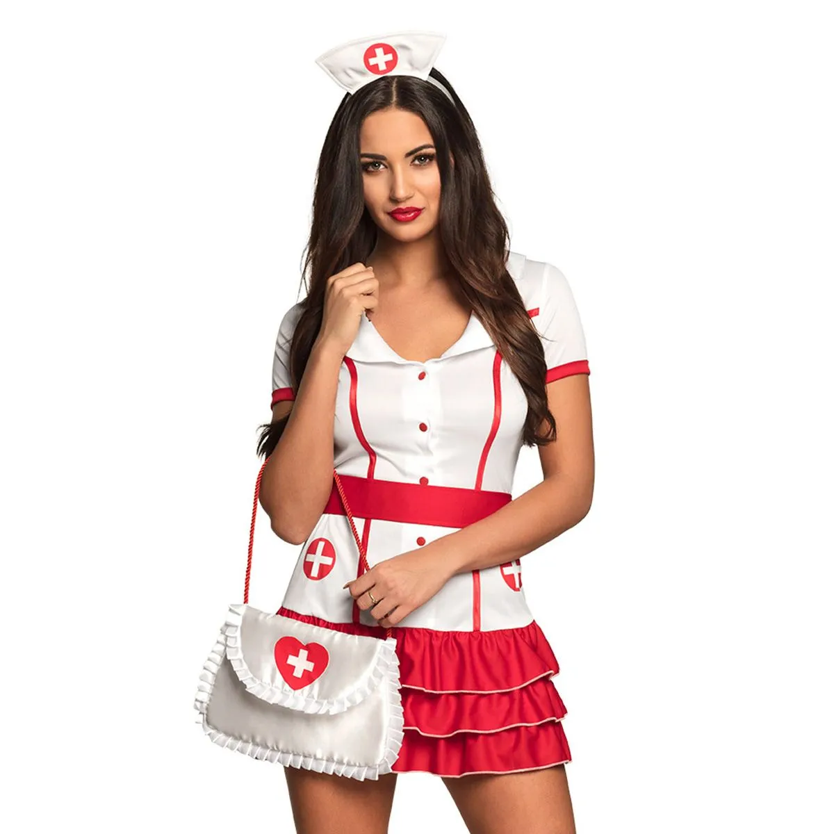 Leuk tasje in zuster/verpleegster stijl met rood kruis.