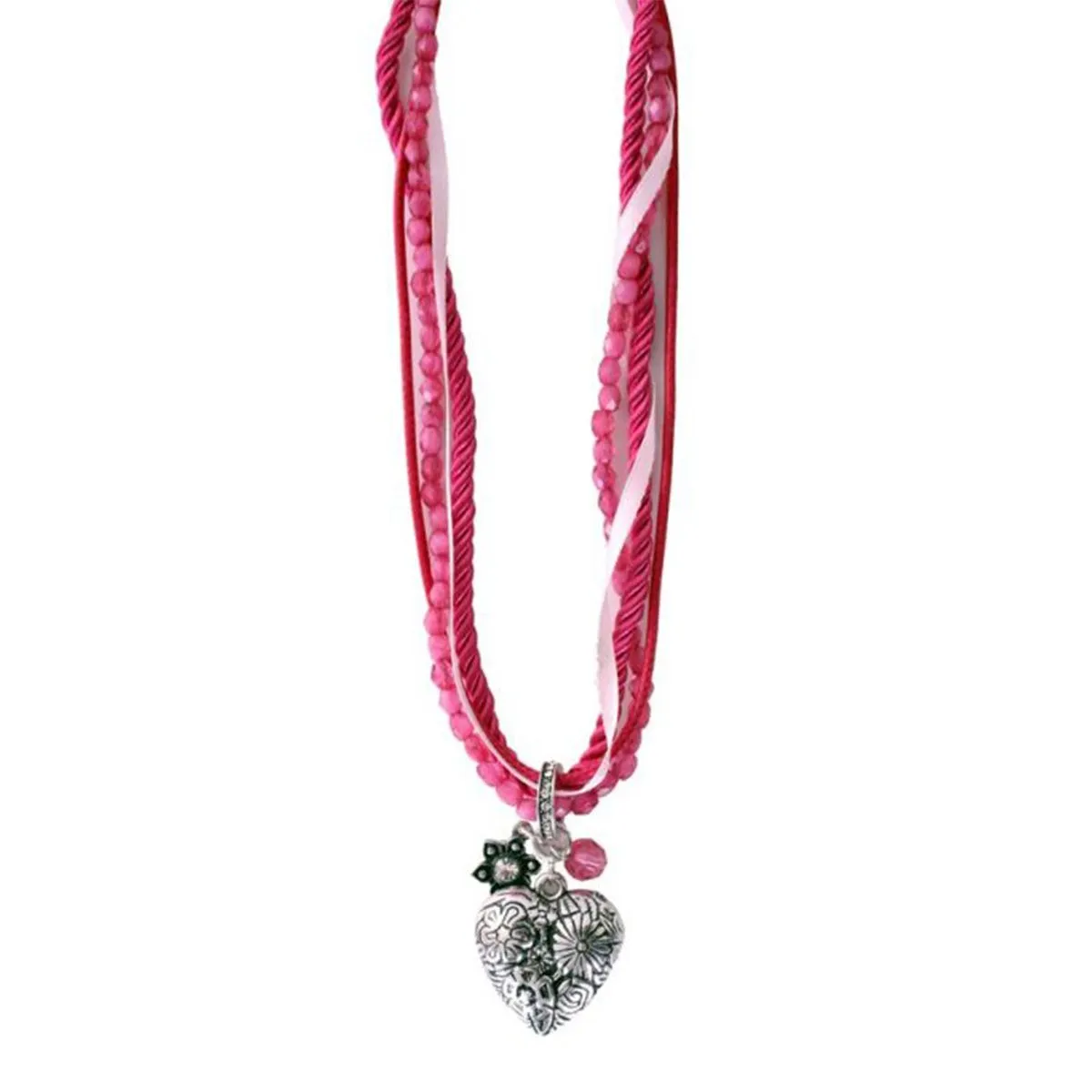 Deze prachtige deluxe Tiroler ketting met hartje en roze lint is een perfecte toevoeging aan je jurk. Het geeft je dirndl net dat beetje extra.